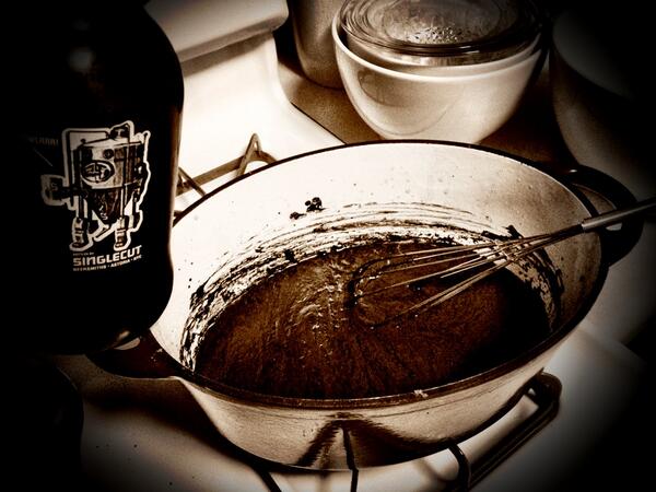 Because these cookies were so amazing, I wanted to spread ore cookie love around town and stopped by Singlecut after rehearsal that night. I had decided to spend my St. Patty’s Day there on Sunday, they were having a bluegrass band, good beer, that’s my kind of low key celebration. We got to talking and I said I’d take requests for goodies on Sunday, what do you want? Andrew had a genius (but glaringly obvious – how did I not think of this??) idea to bake something with their beer. David already had this genius idea already that night:
