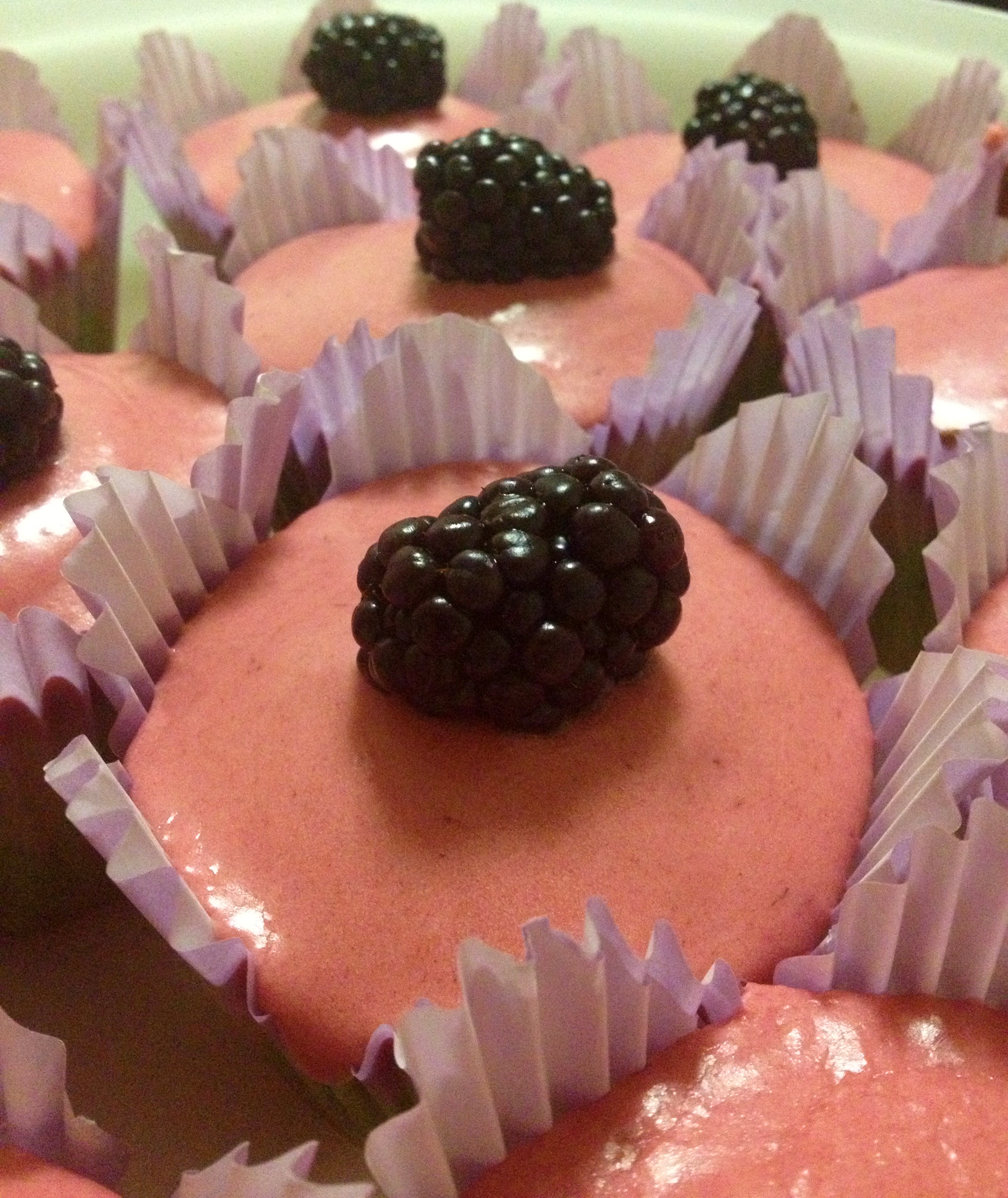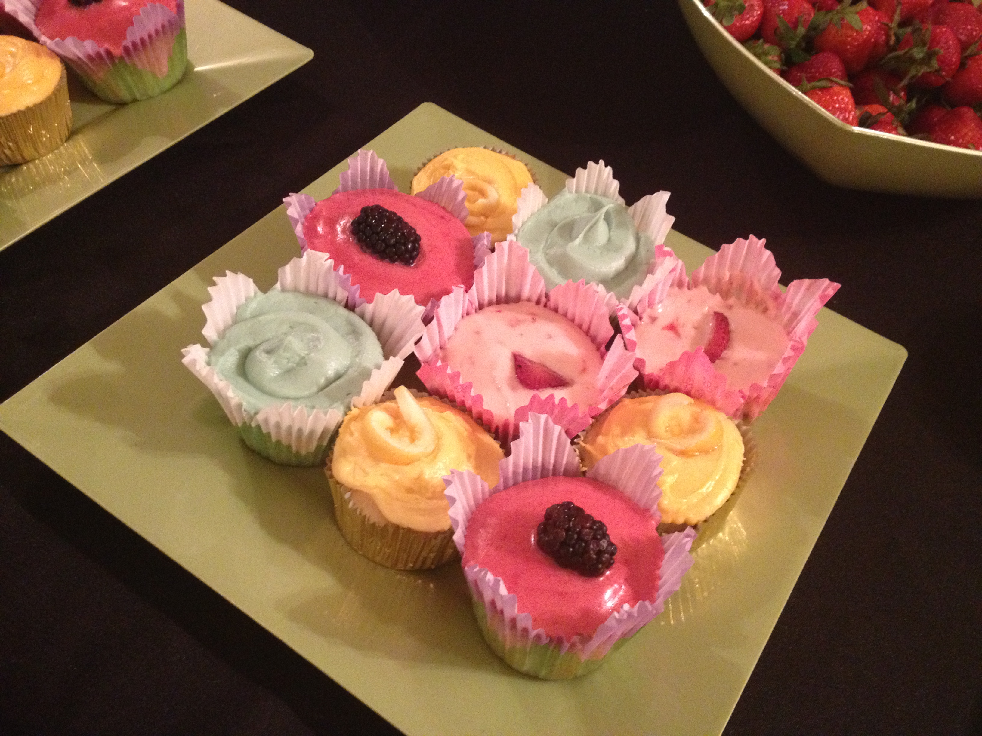 Meanwhile, I-Renee was freaking out because the day before, my school, TBMS, had called me up and asked if I would be able to make some goodies for the reception of their Black Tie Voice Recital on Friday, which I was also participating in. I, of course, was thrilled and jumped at the chance to spread the word beyond my usual reach, and share more of myself with my students and their parents. As it turns out, making that many of various things (cookies, cupcakes, etc) isn’t all that hard or unmanageable, just time consuming. I decided to go with a strawberry, blackberry, lemon, and vanilla. The lemon is one of my favorites and quickly becoming a staple in my repertoire. The vanilla I wanted to offer as an option for those that may enjoy the simple side of cupcakes.