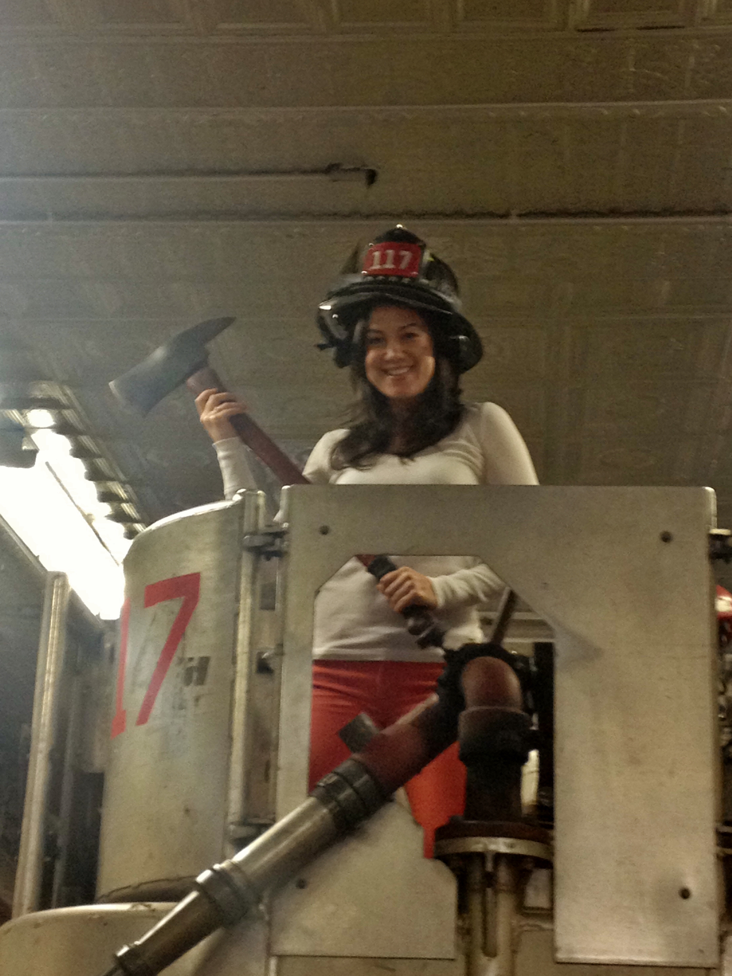 the 117 is our favorite truck. Josie has been in it and although she appreciates ALL firefighters she only waves at the 117 when she sees them on the block. I grew up around the corner from engine 5 in Manhattan, and only once got to eat food they made when they had a sidewalk BBQ. You sure are one lucky single girl.