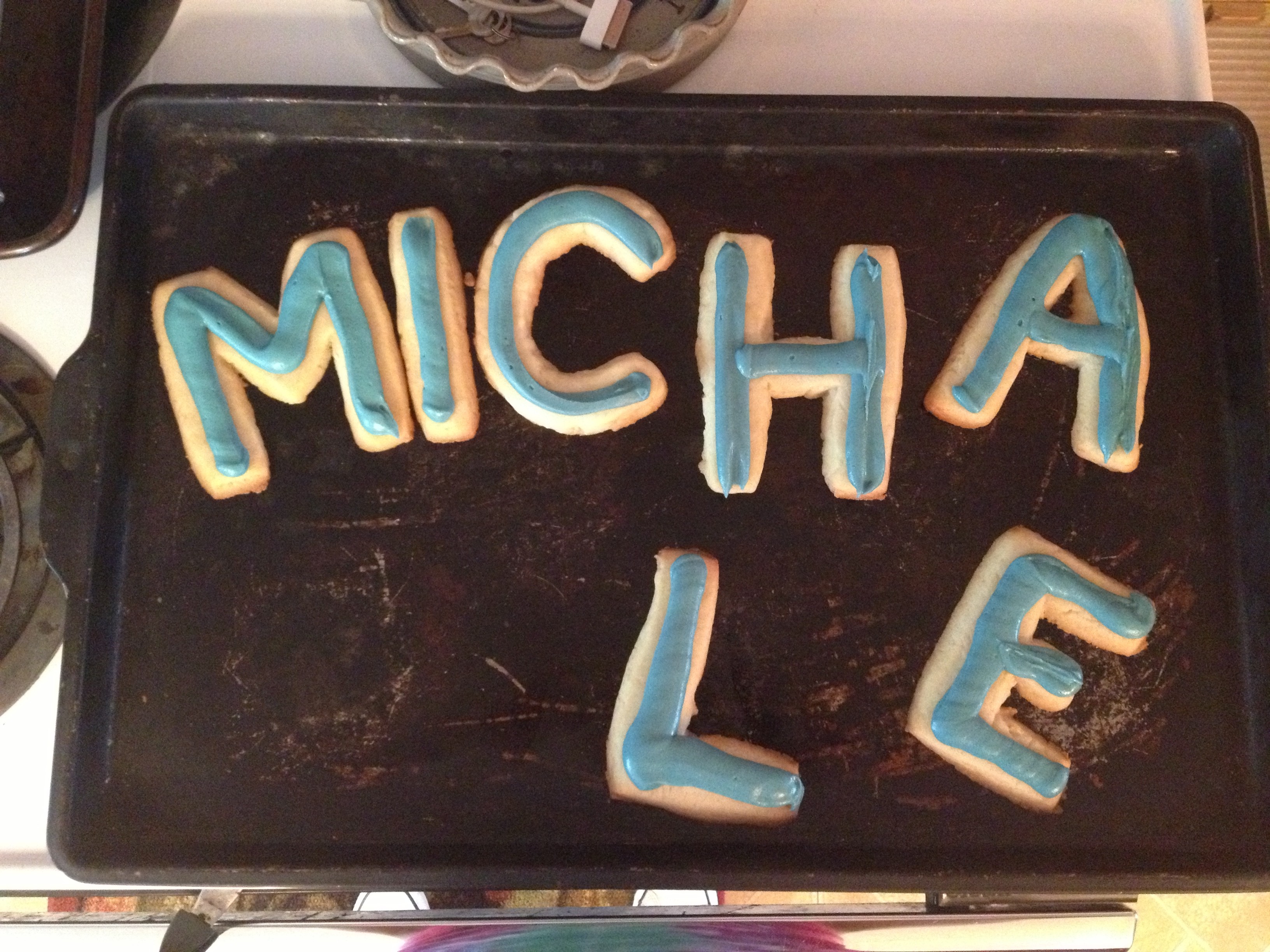 The cutout cookies were, of course, delicious, and I decided to free hand some letters to spell out the grad’s name.