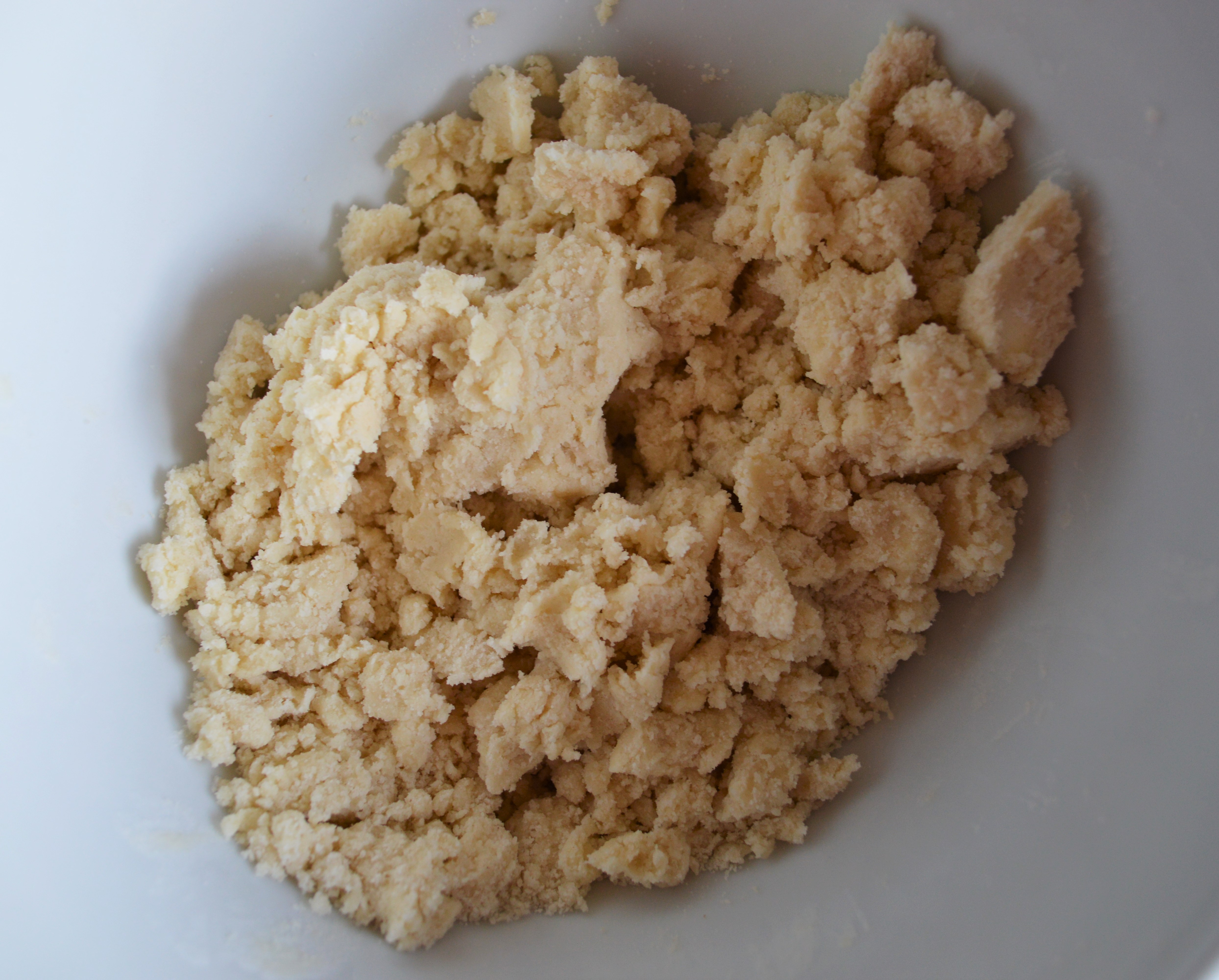 Once you start seeing pea sized chunks of butter, I get right in there and mix with my hands to make sure everything is truly blended.