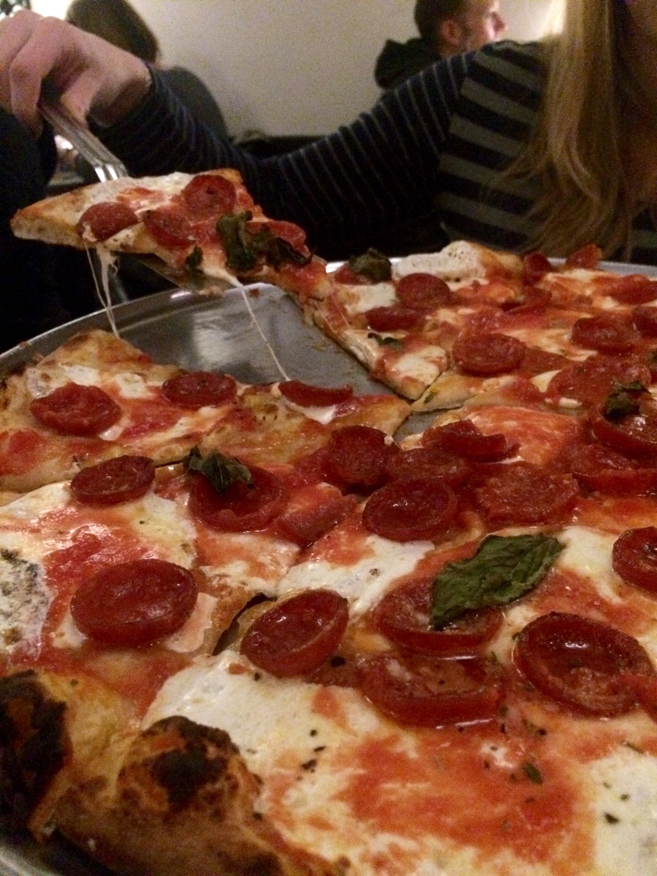 Amongst all the fun, last Saturday was a stand out day. Kyle, who is a volunteer fireman, got to witness not one, but TWO firehouse cookie drops and see some pretty big rigs and old FDNY houses. He had requested a few things for the weekend, one of them being that, another to get drinks at Jack’s Fire Dept in Sunnyside (a great local’s spot) and the third being to have a real New York slice. We’re talking pizza, people, and I have to say I was a little nervous about that request. I can satisfy and serve up the other two, no problem. You want to see some firehouses? I know some guys. You want to go drinking at a firemen themed bar? I’m your girl. You want me to take to you to the best pizza in NYC? I got nothing.